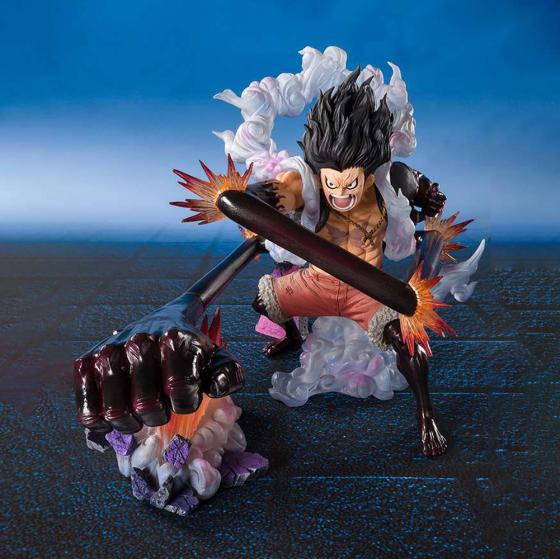 Tamashii Nations präsentiert Monkey D. Luffy in seiner Gear 4 Snakeman - King Cobra Form, für die Figuarts ZERO Extra Battle Kollektion. Diese beeindruckende Figur verewigt Luffy mitten im Angriff, veredelt durch einen präzise modellierten Bewegungseffekt und seltene Intensität von Farbdetails.