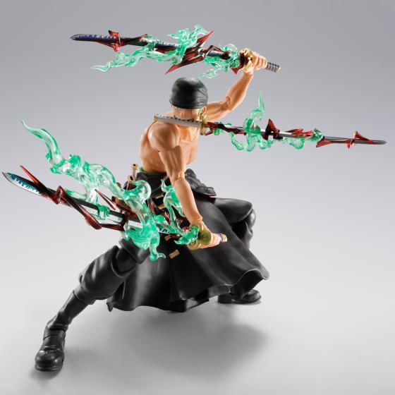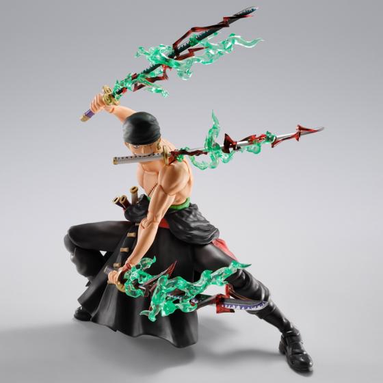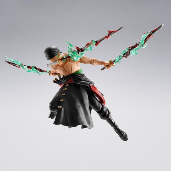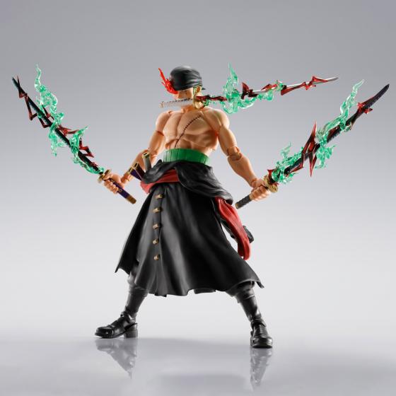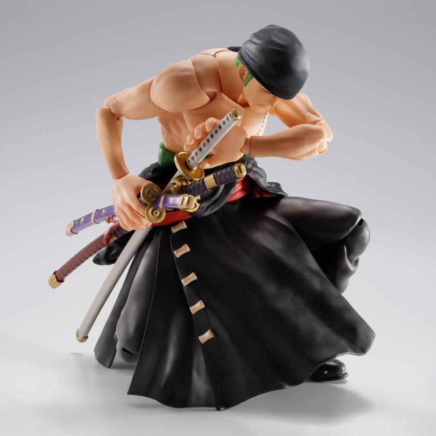 Proveniente del anime One Piece, el legendario espadachín Roronoa Zoro, que ha dominado el Estilo de las Tres Espadas de Enoh, se presenta en SH.Figuarts Roronoa Zoro -The King of the Hell-. Disponible en preventa a partir del 10 de octubre en la tienda en línea de Tamashii, este modelo captura toda la fuerza y la pasión del personaje.