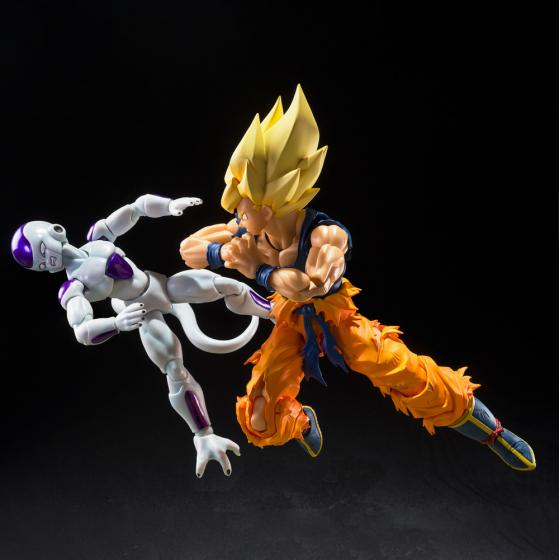 Le Super Saiyan légendaire renaît dans une version explosive avec la figurine Super Saiyan Son Goku <Fighter of Rage> – S.H.Figuarts, directement inspirée de la saga de Freezer. Bandai signe ici une pièce magistrale qui capture toute l’intensité de la transformation mythique déclenchée par la rage.