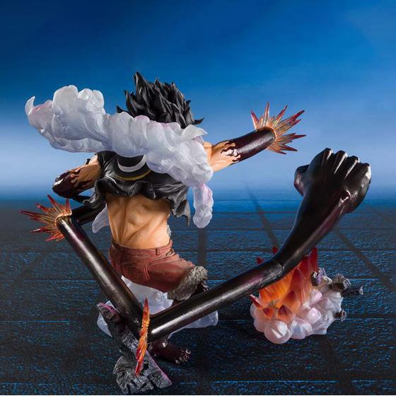 Tamashii Nations presenta Monkey D. Luffy nella sua forma Gear 4 Snakeman - King Cobra, per la collezione Figuarts ZERO Extra Battle. Questa impressionante figura immortala Luffy in pieno attacco, esaltato da un effetto di movimento scolpito con precisione e dettagli di pittura di rara intensità.