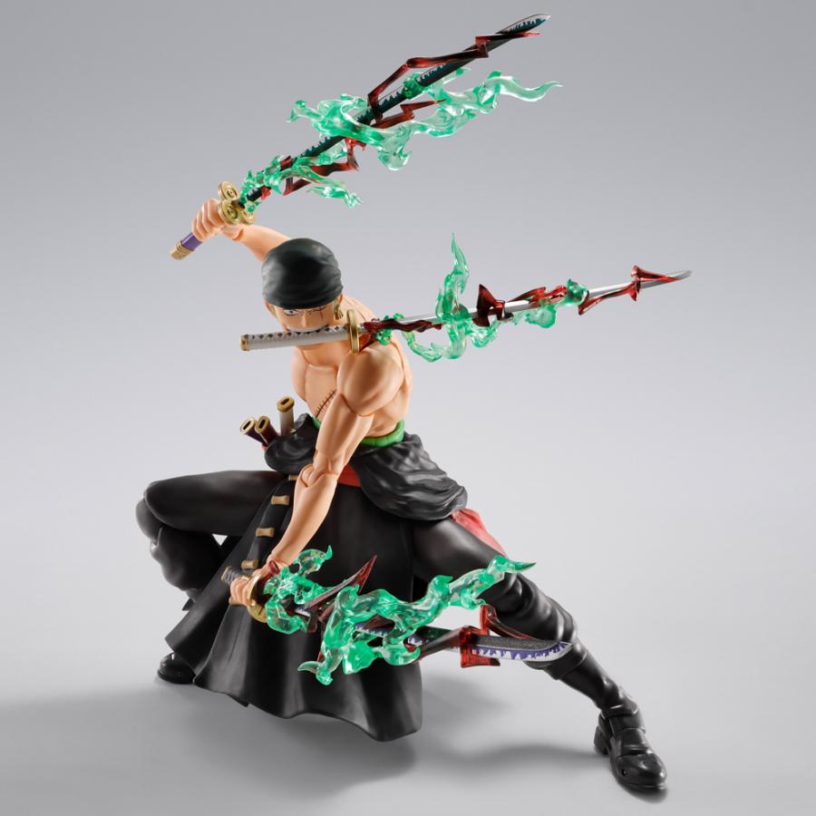 Tratto dall'anime One Piece, il leggendario spadaccino Roronoa Zoro, che ha padroneggiato lo Stile delle Tre Spade di Enoh, si mostra in SH.Figuarts Roronoa Zoro -Il Re dell'Inferno-. Disponibile in pre-ordine dal 10 ottobre sul negozio online Tamashii, questo modello cattura tutta la potenza e l'ardore del personaggio.